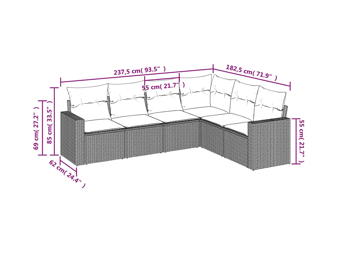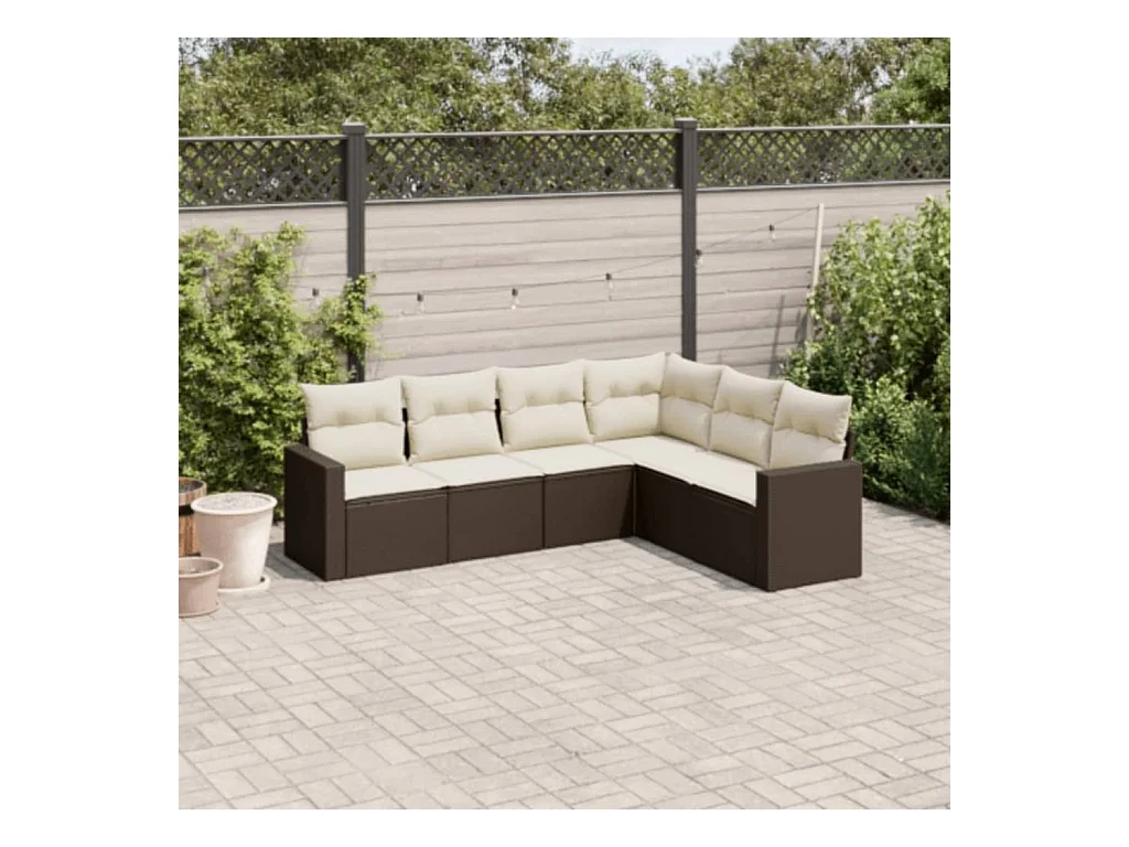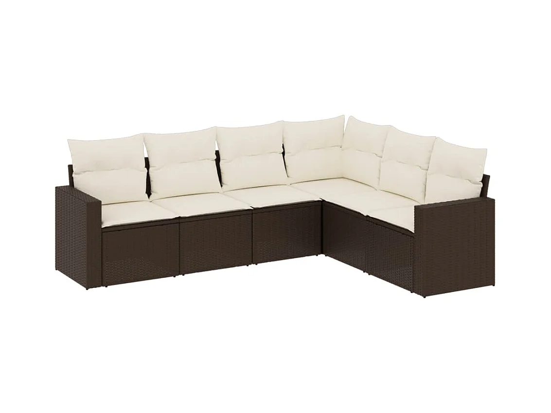 Salon de jardin avec coussins 6 pcs marron résine tressée