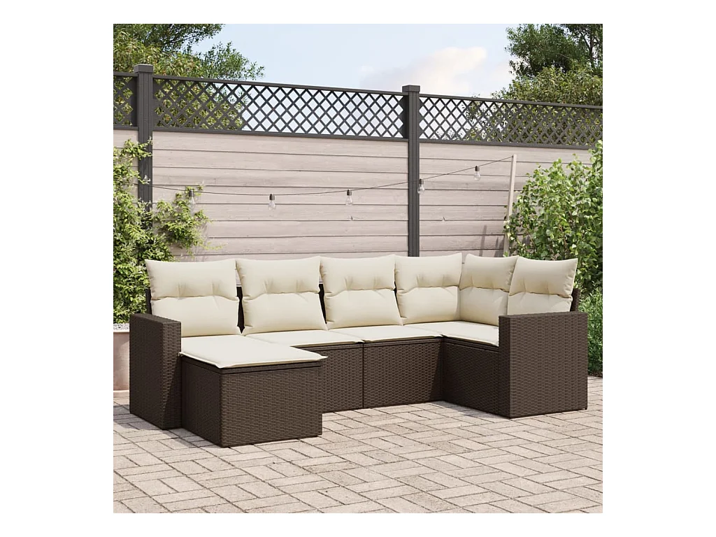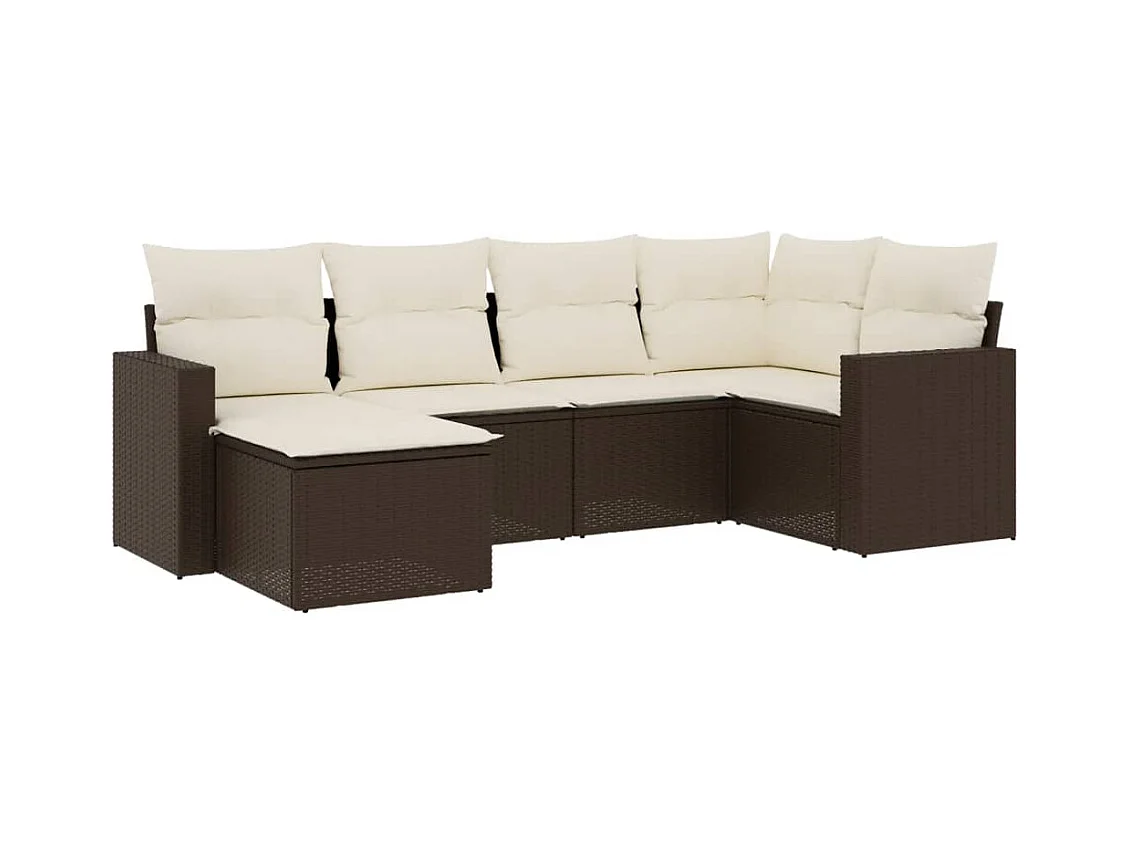 Salon de jardin avec coussins 6 pcs marron résine tressée