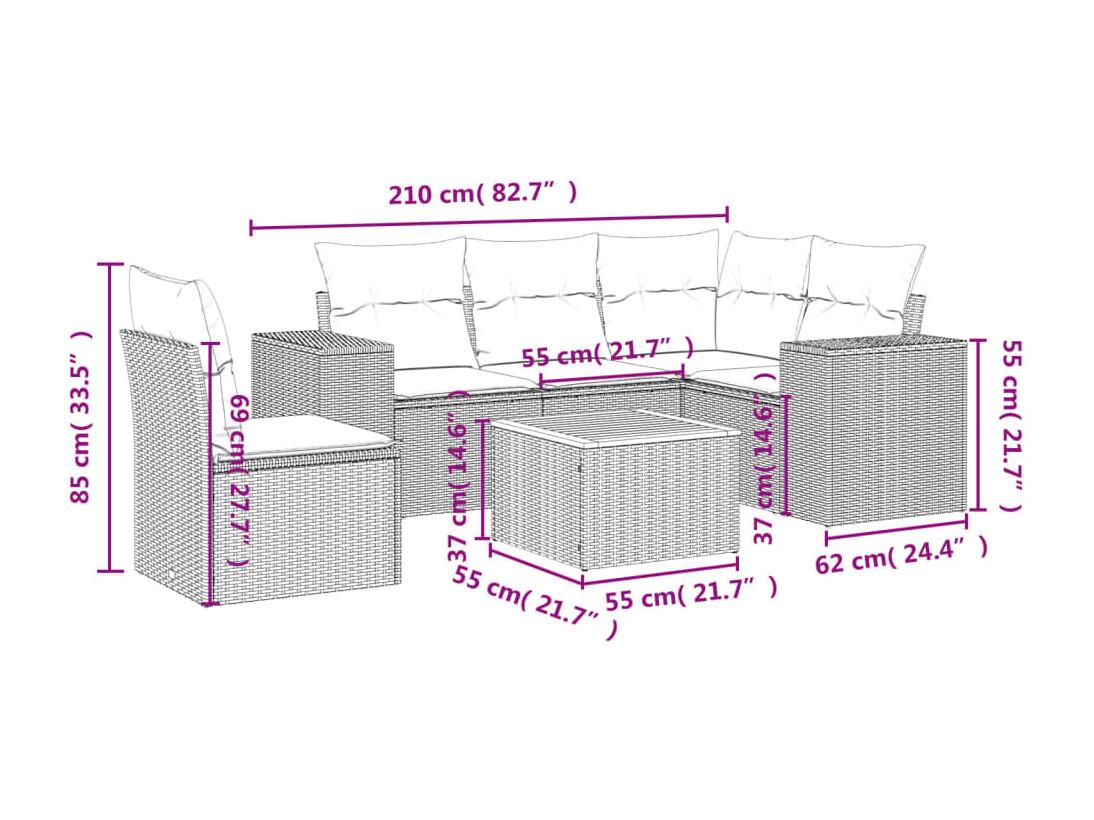 Salon de jardin avec coussins 6 pièces beige résine tressée