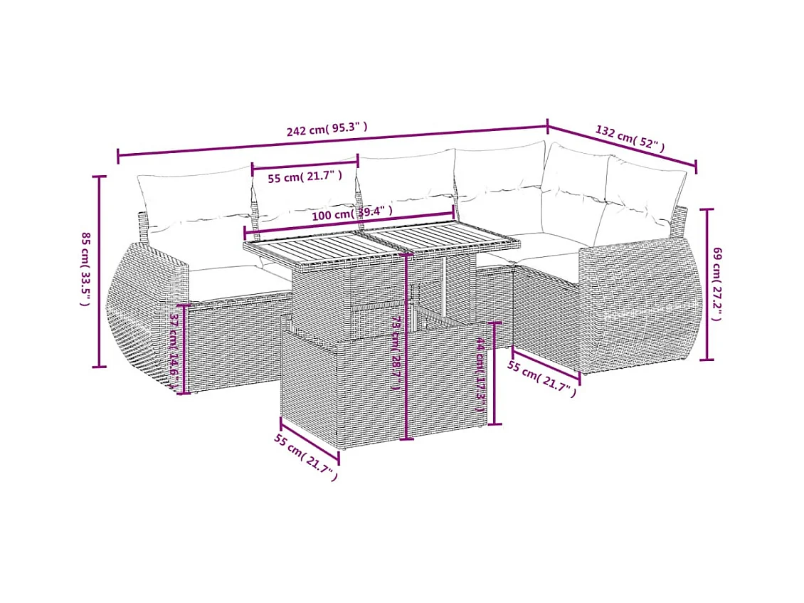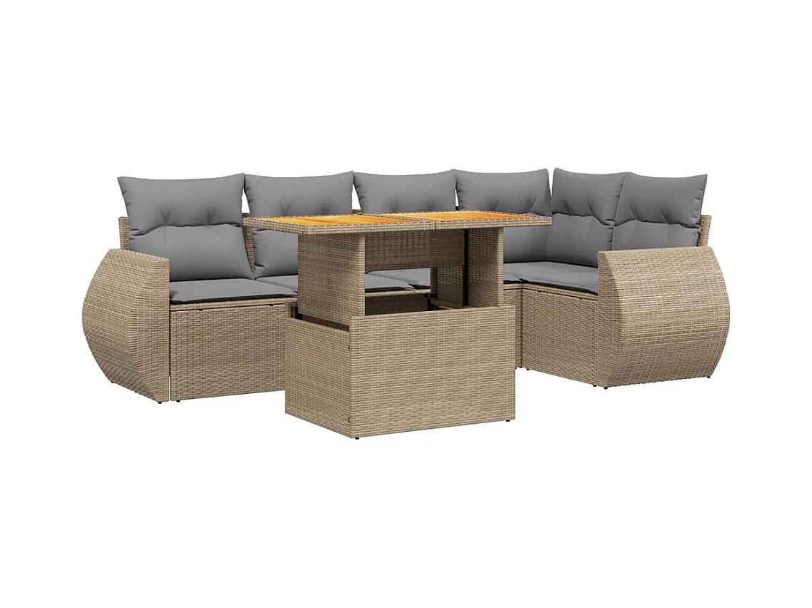 Salon de jardin avec coussins 6 pièces beige résine tressée
