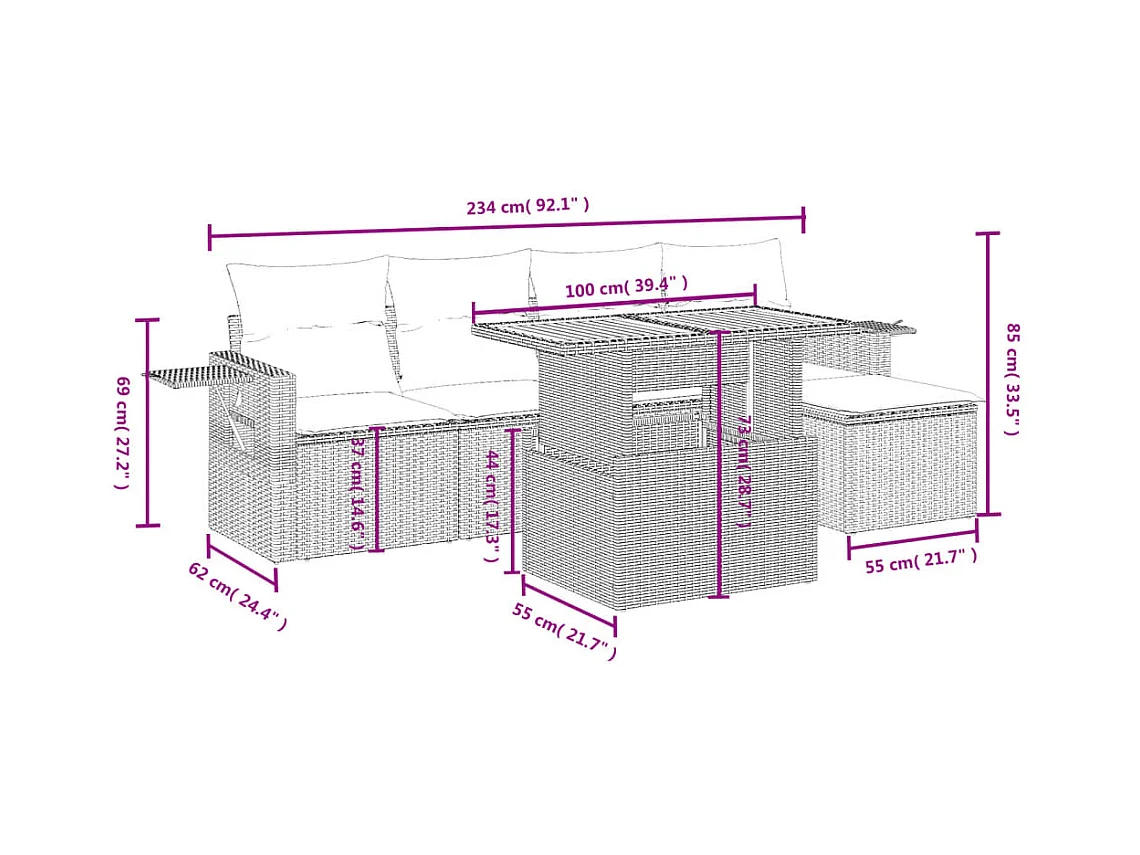 Salon de jardin avec coussins 5 pièces beige résine tressée