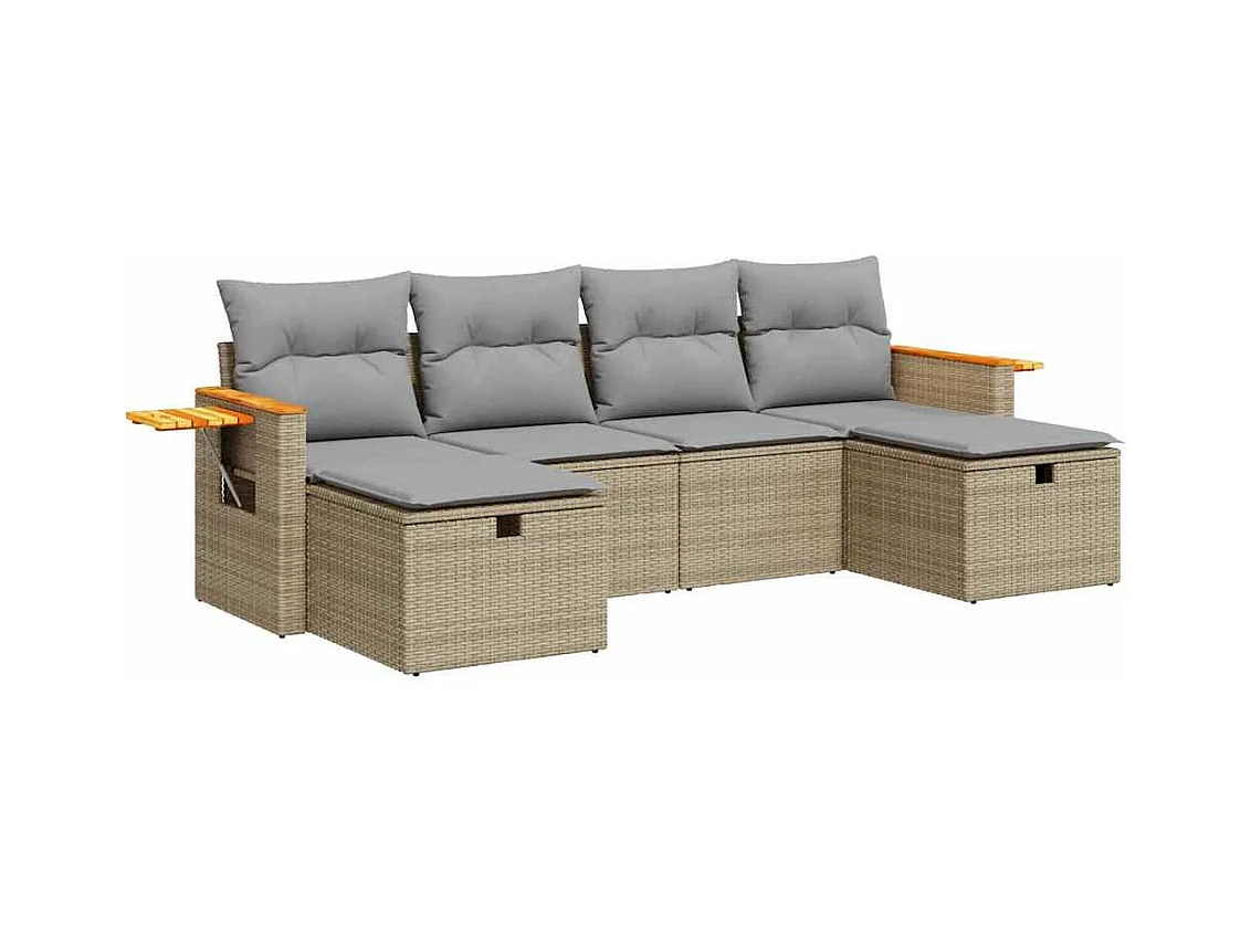 Salon de jardin avec coussins 6 pièces beige résine tressée