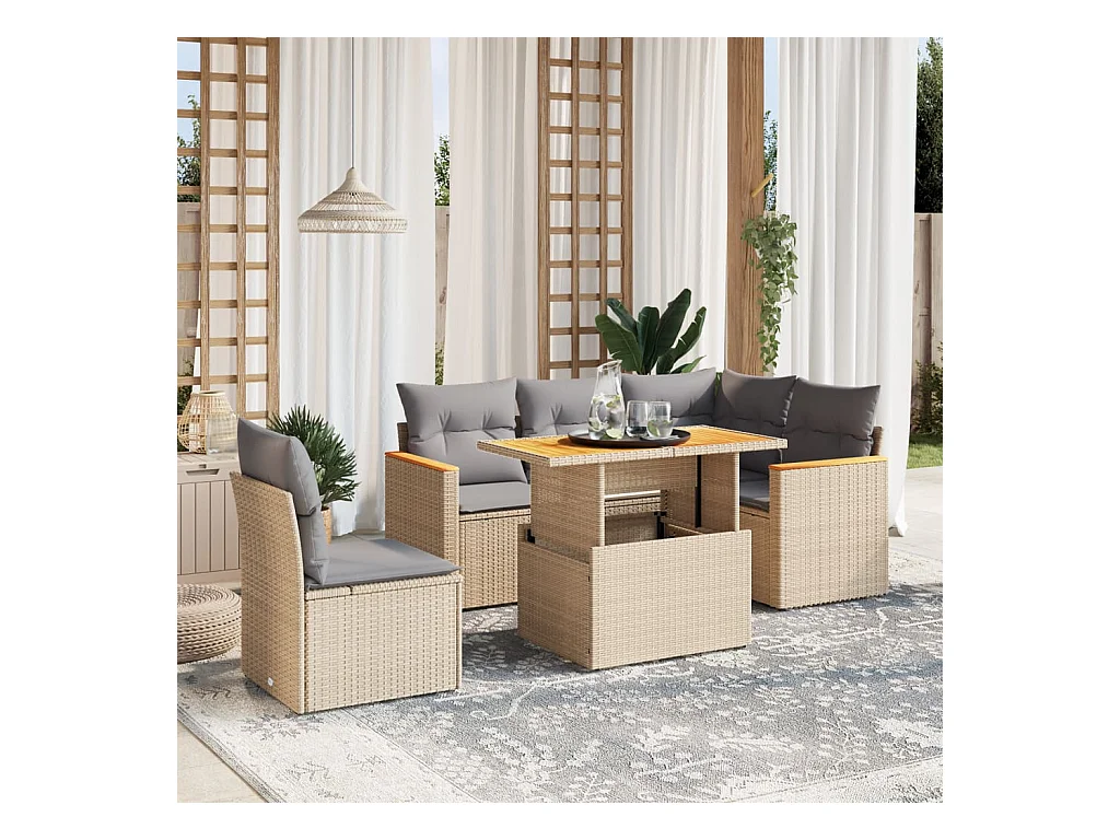 Salon de jardin avec coussins 6 pièces beige résine tressée