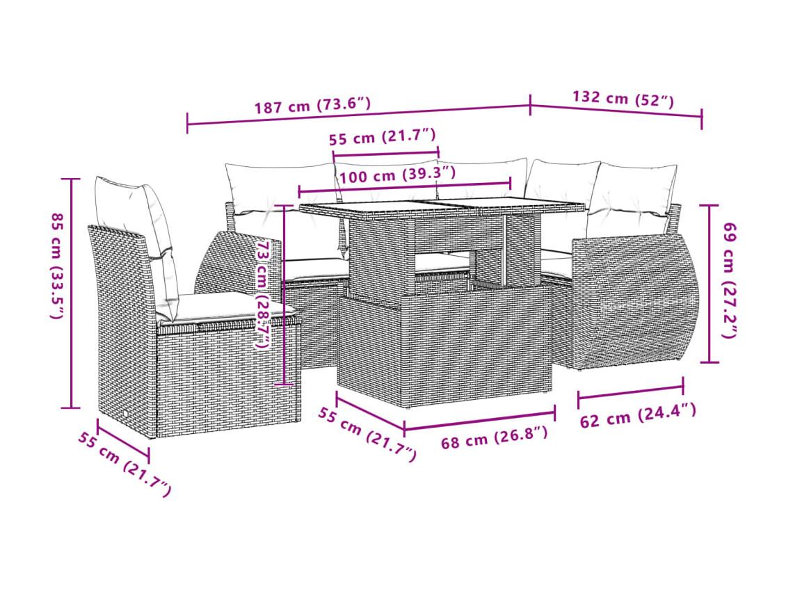 Salon de jardin avec coussins 6 pièces beige résine tressée