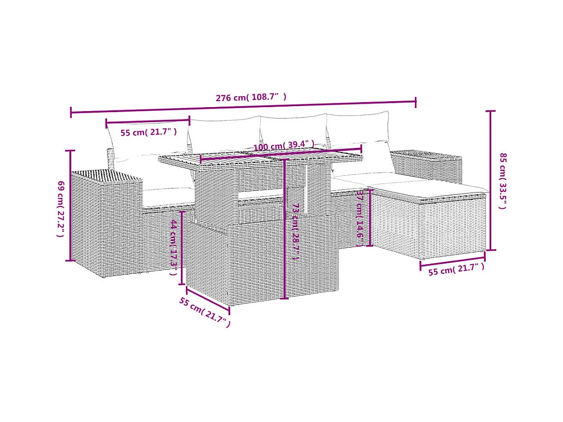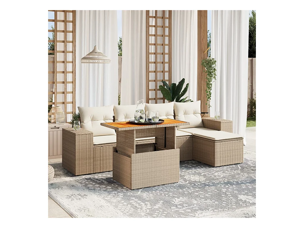 Salon de jardin avec coussins 6 pièces beige résine tressée