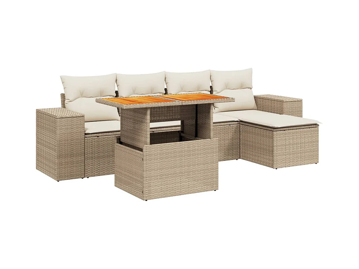 Salon de jardin avec coussins 5 pièces beige résine tressée