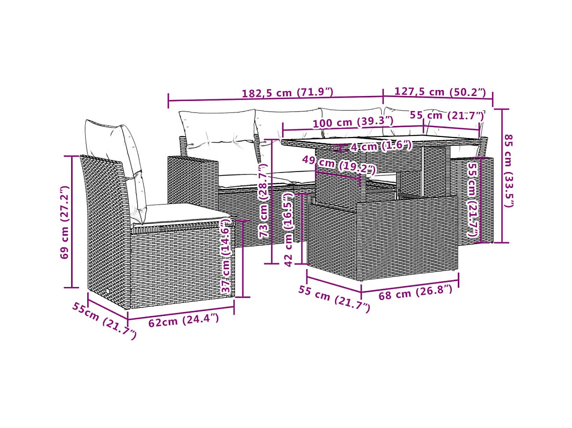 Salon de jardin avec coussins 6 pièces beige résine tressée