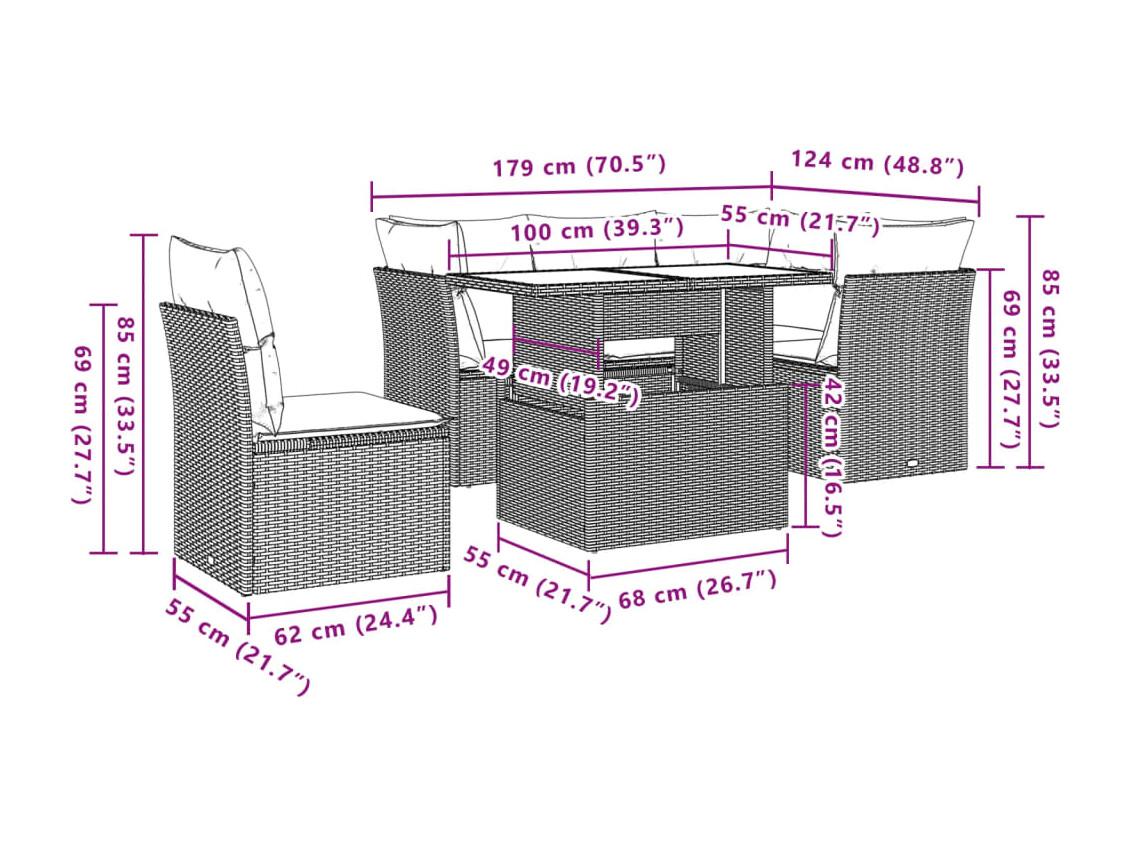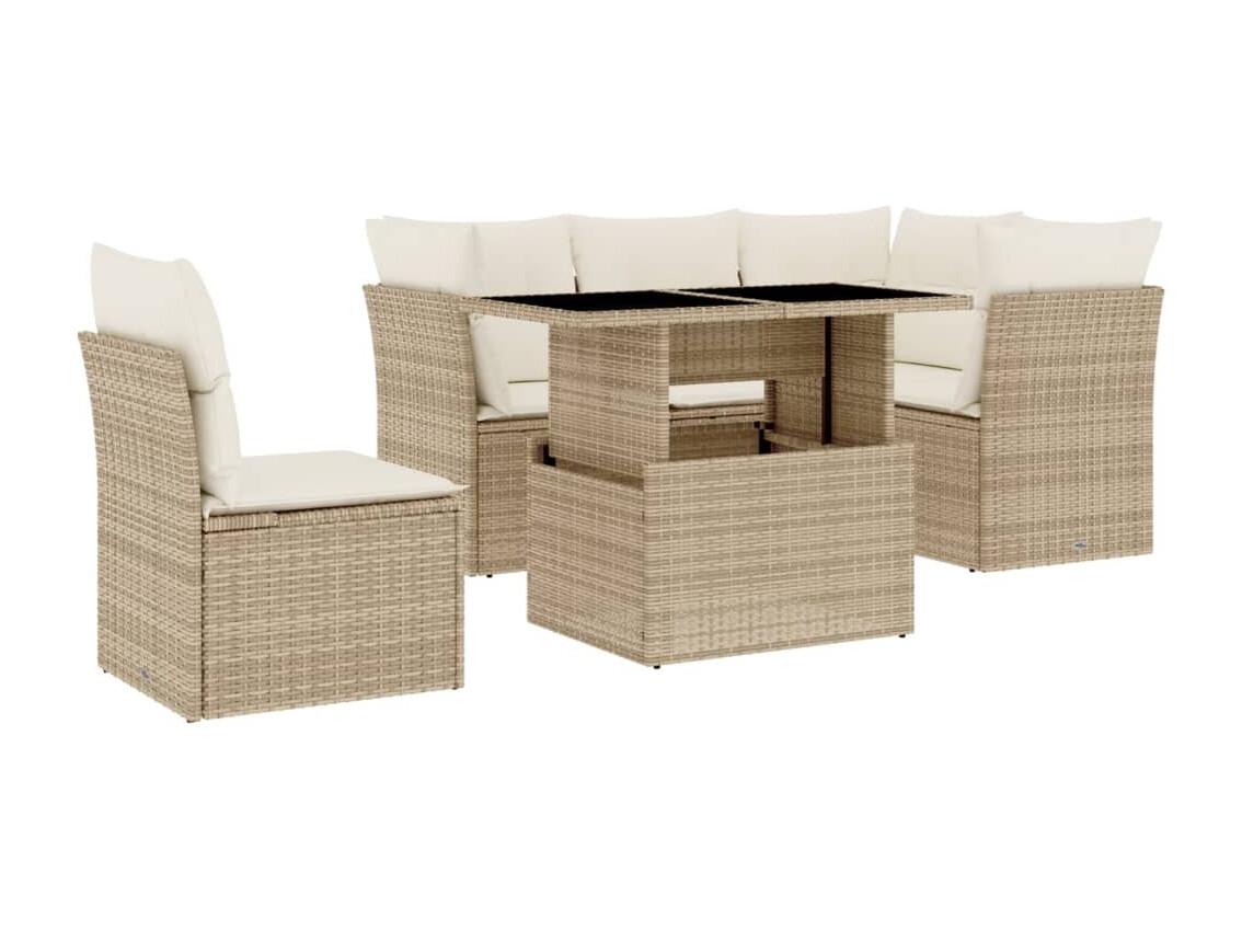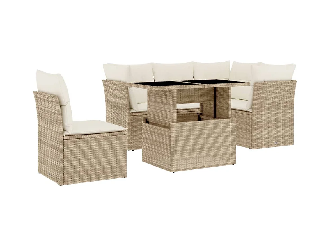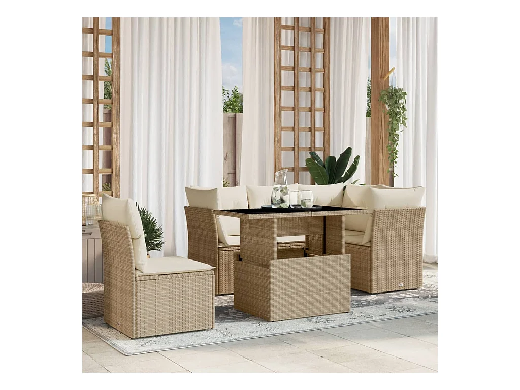 Salon de jardin avec coussins 6 pièces beige résine tressée