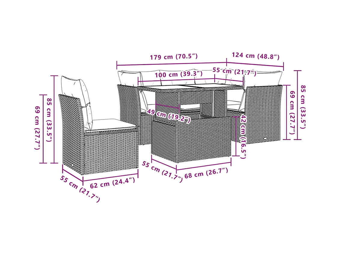 Salon complet de jardin Canapé 2 places et 2 fauteuils