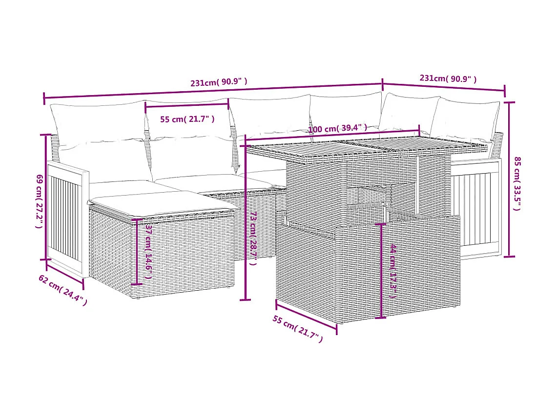 Salon complet de jardin Canapé 2 places et 2 fauteuils