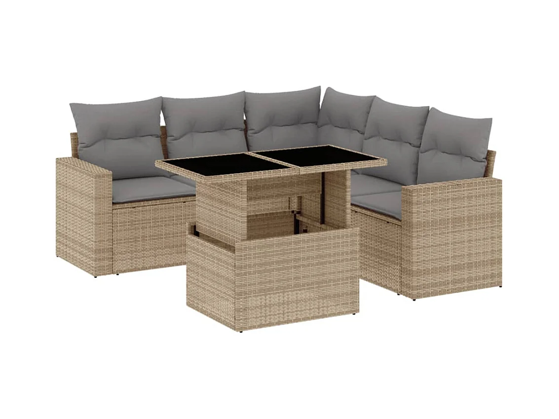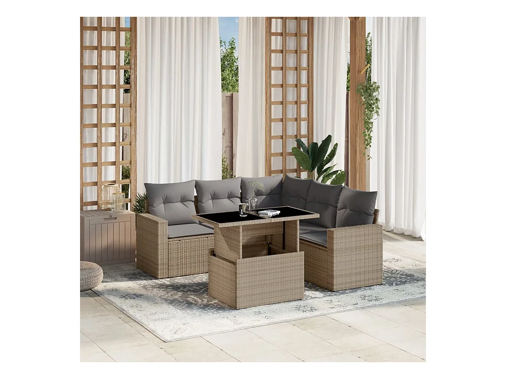 Salon de jardin avec coussins 6 pièces beige résine tressée