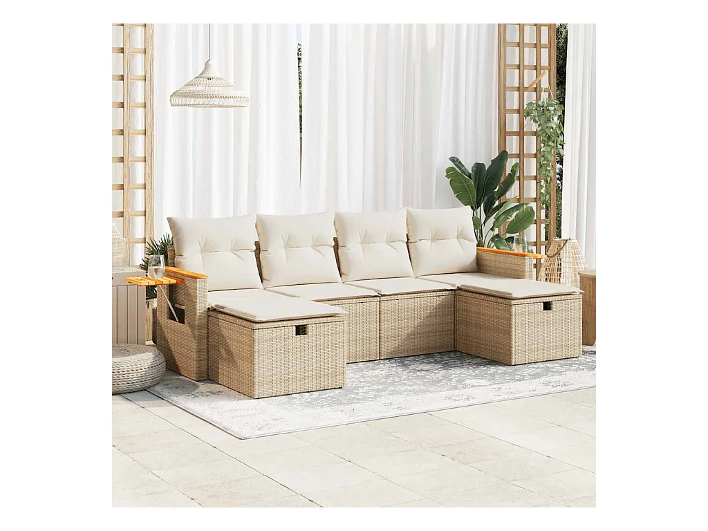 Salon de jardin avec coussins 6 pièces beige résine tressée