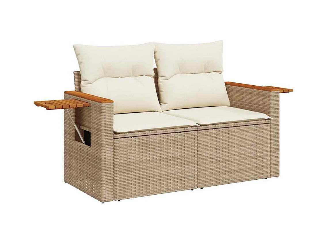 Salon de jardin avec coussins 7 pièces beige résine tressée