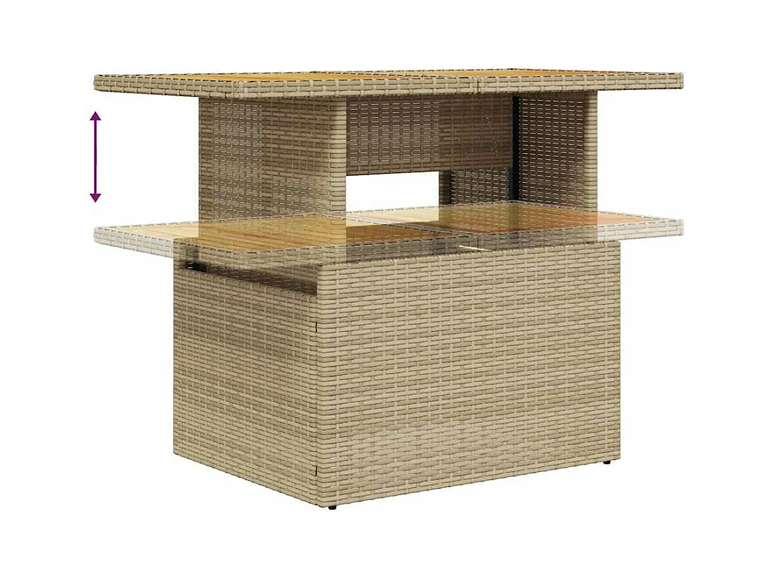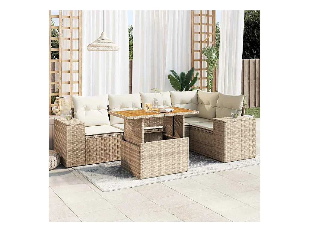 Salon de jardin 6 pièces avec coussins beige résine tressée acacia