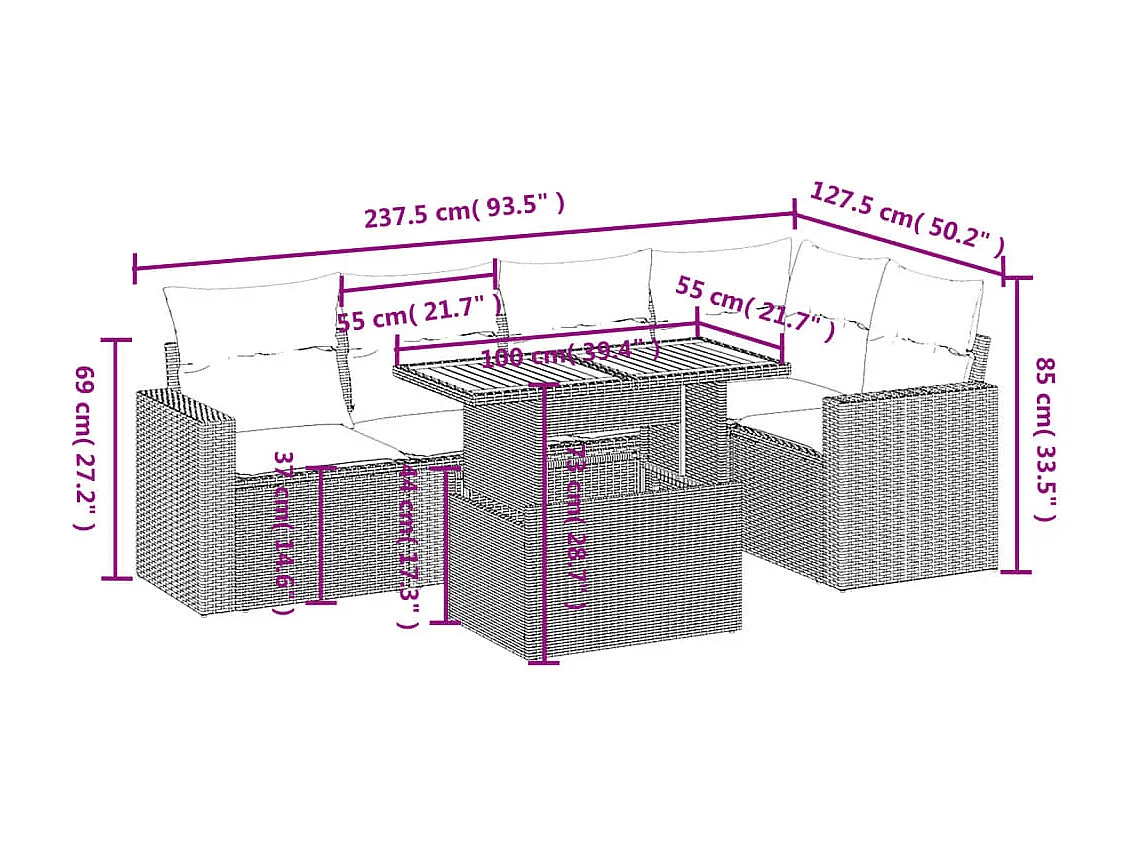 Salon complet de jardin Canapé 2 places et 2 fauteuils