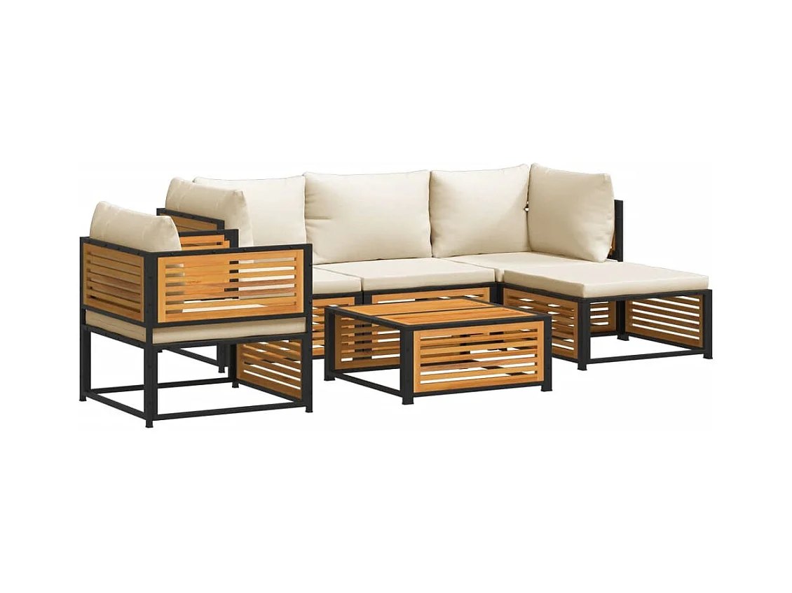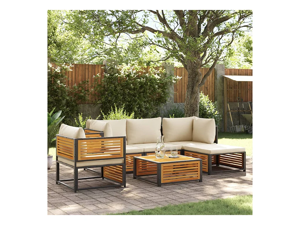 Salon de jardin avec coussins 6 pièces bois d'acacia solide
