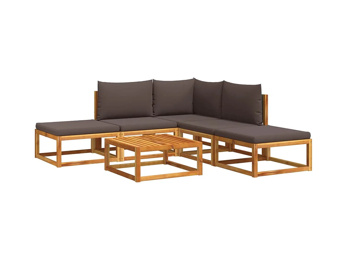 Salon de jardin avec coussins 6 pièces bois d'acacia solide