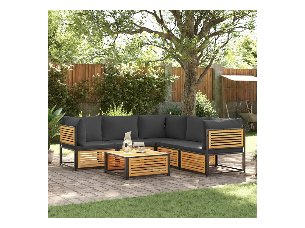 Salon de jardin avec coussins 6 pièces bois d'acacia solide