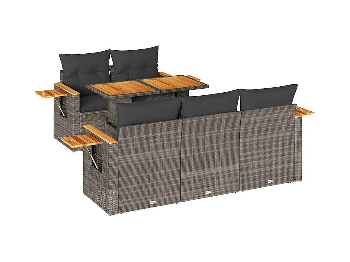 Salon de jardin avec coussins 6 pièces gris résine tressée acacia