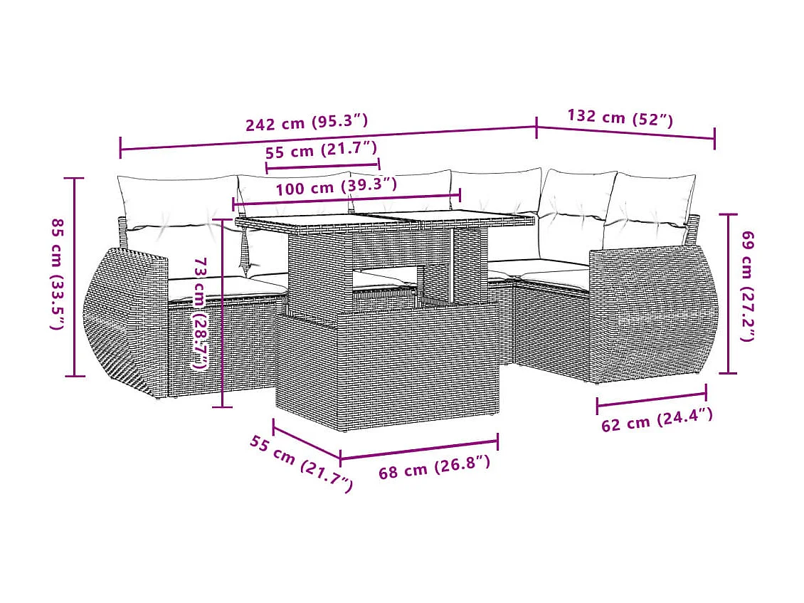 Salon complet de jardin Canapé 2 places et 2 fauteuils