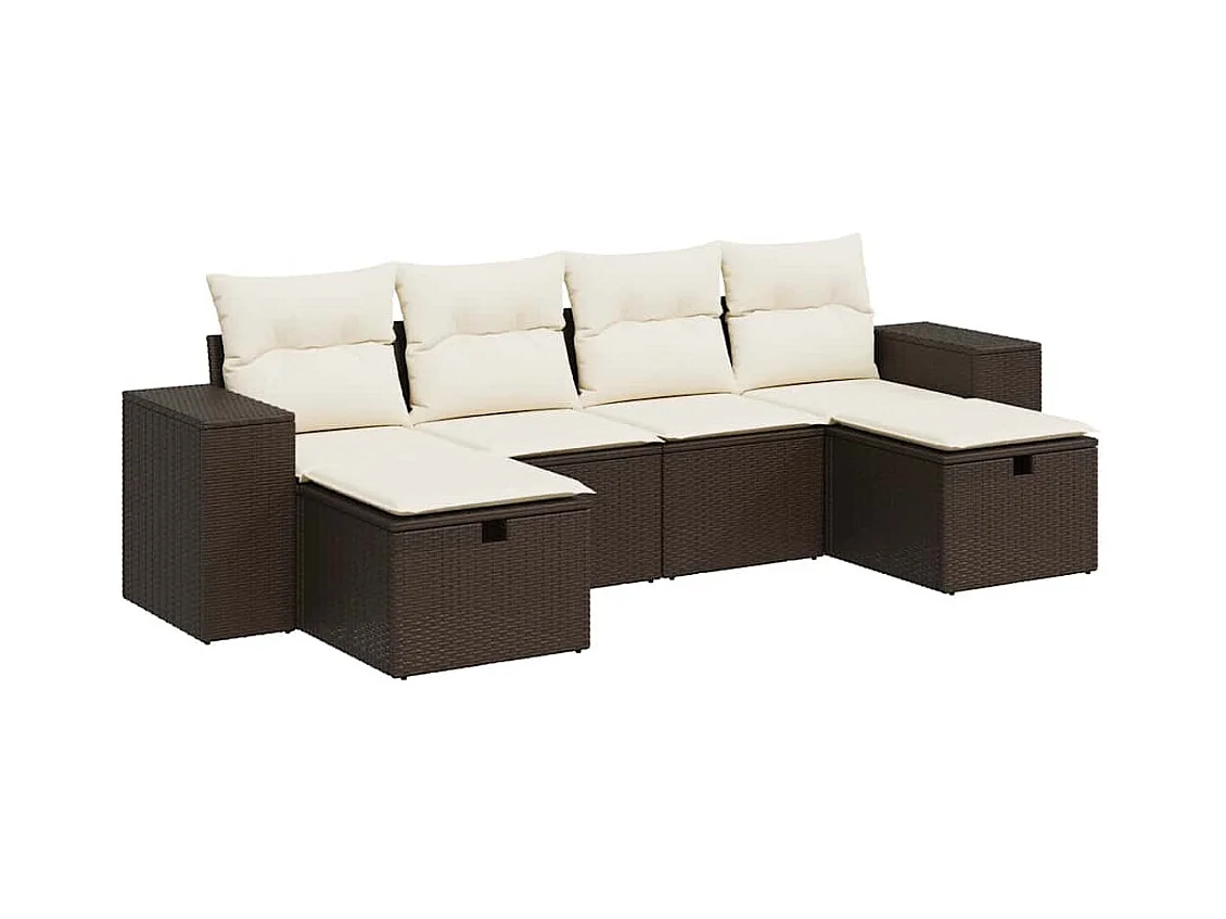 Salon de jardin avec coussins 6 pièces marron résine tressée