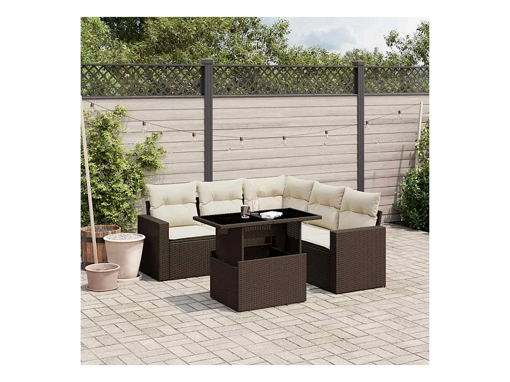 Salon de jardin avec coussins 6 pièces marron résine tressée