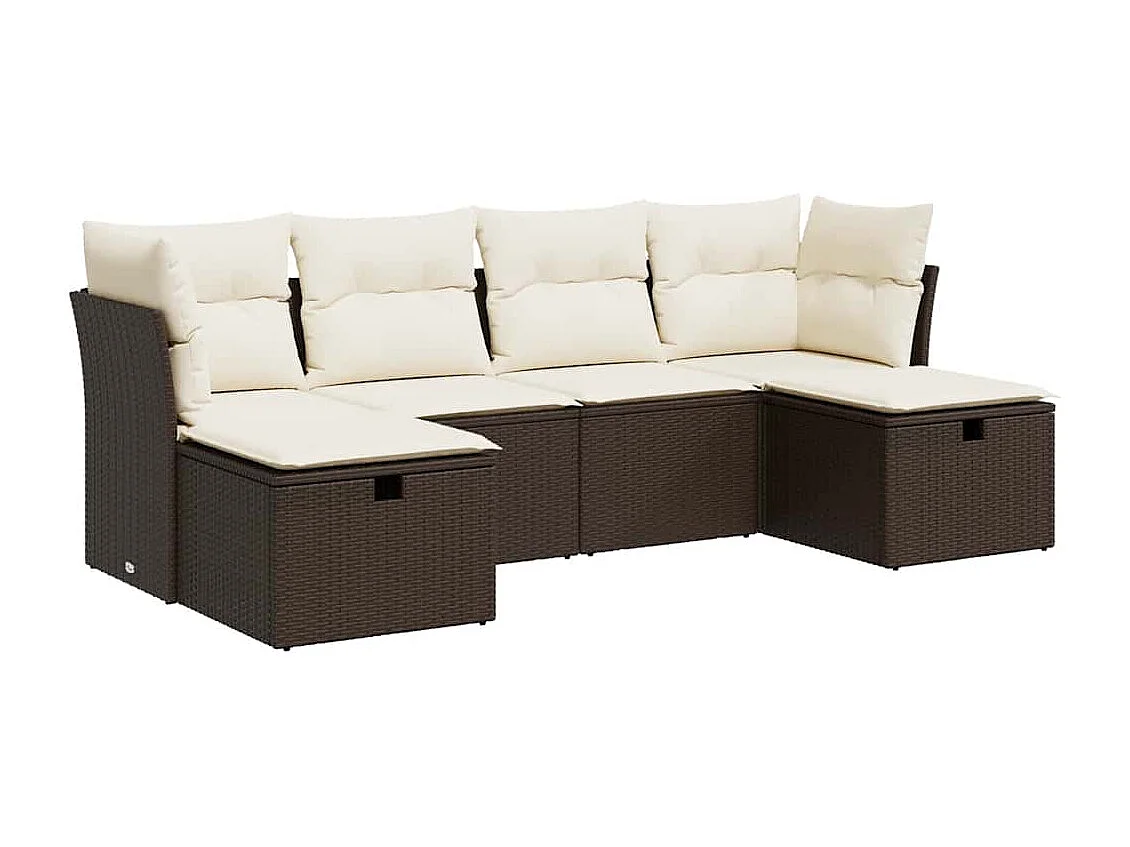 Salon de jardin avec coussins 6 pièces marron résine tressée