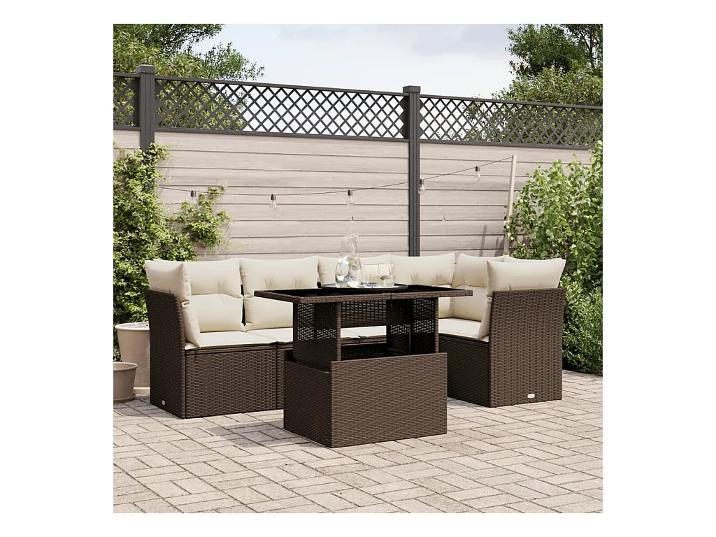Salon de jardin avec coussins 6 pièces marron résine tressée