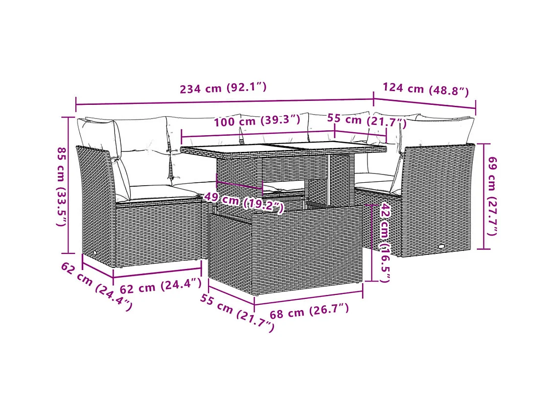 Salon de jardin avec coussins 7 pièces marron résine tressée