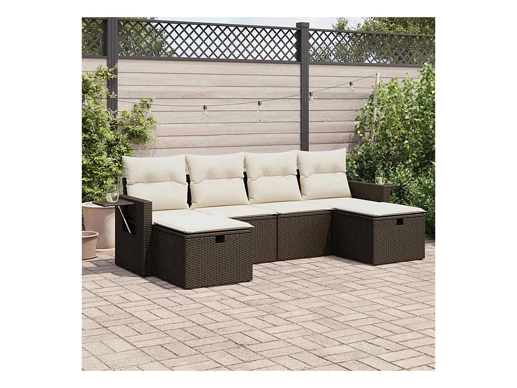 Salon de jardin avec coussins 6 pièces marron résine tressée