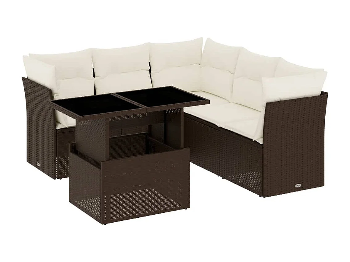 Salon de jardin avec coussins 6 pièces marron résine tressée