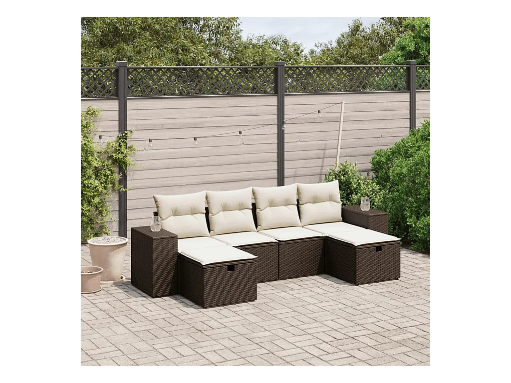 Salon de jardin avec coussins 6 pièces marron résine tressée