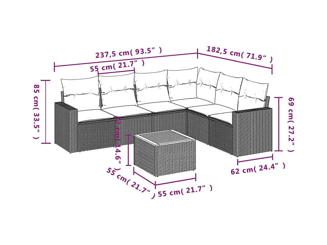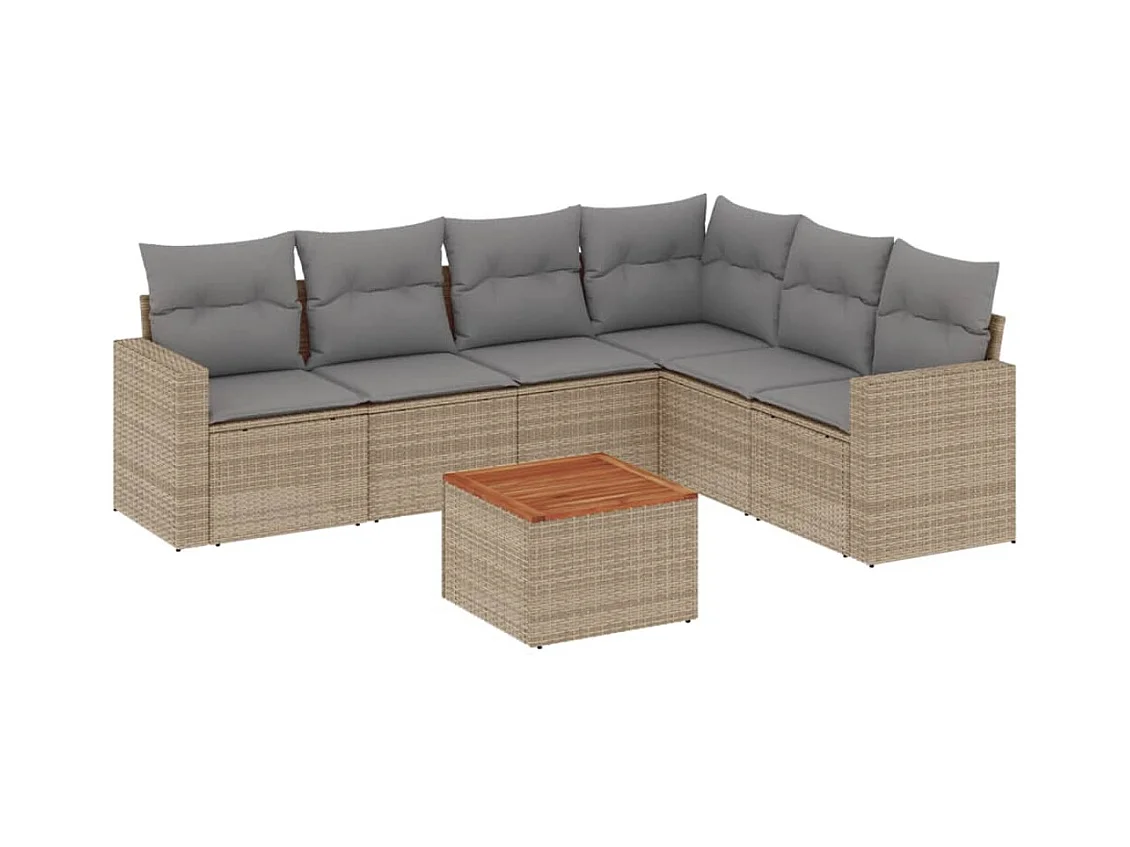 Salon de jardin avec coussins 7 pcs beige résine tressée