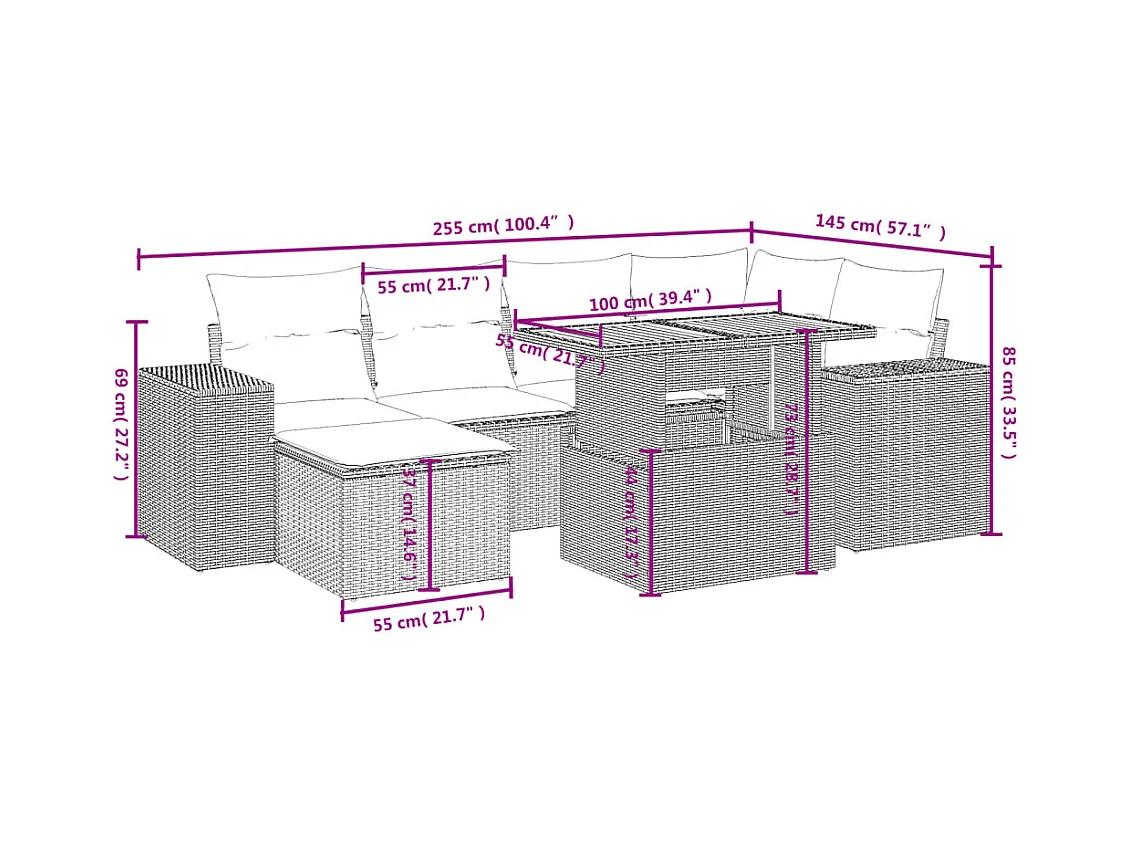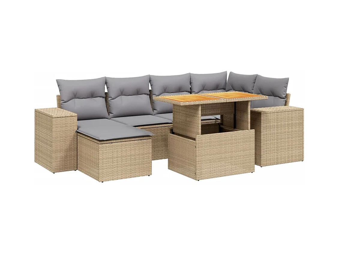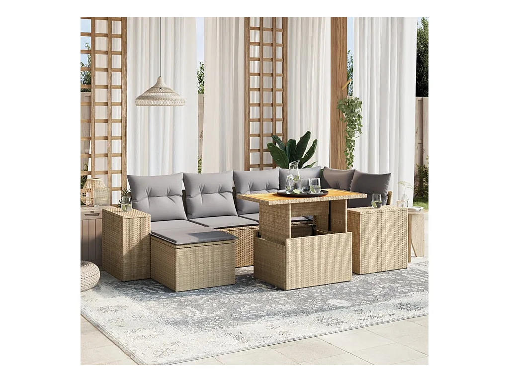 Salon de jardin avec coussins 7 pcs beige résine tressée