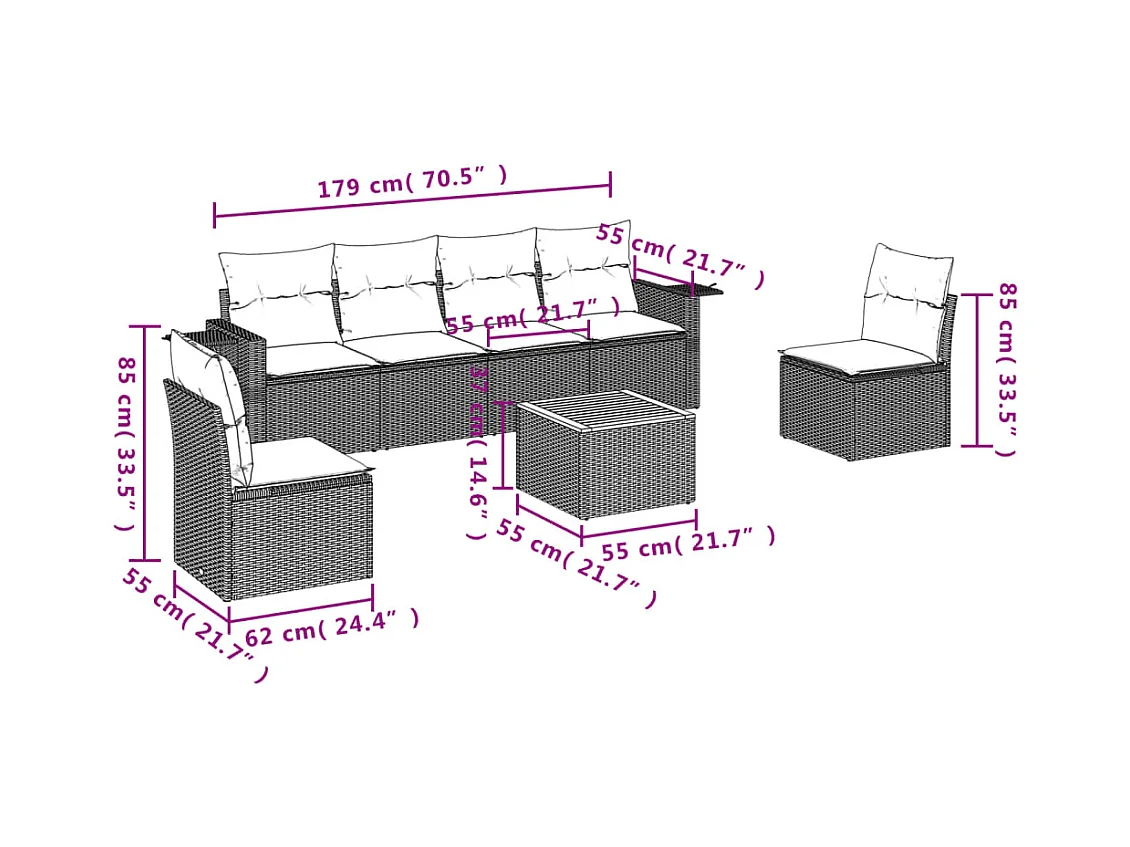 Salon de jardin avec coussins 7 pcs beige résine tressée