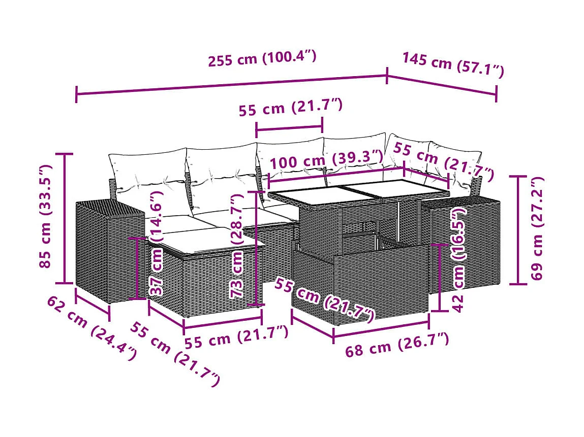 Salon complet de jardin Canapé 2 places et 2 fauteuils