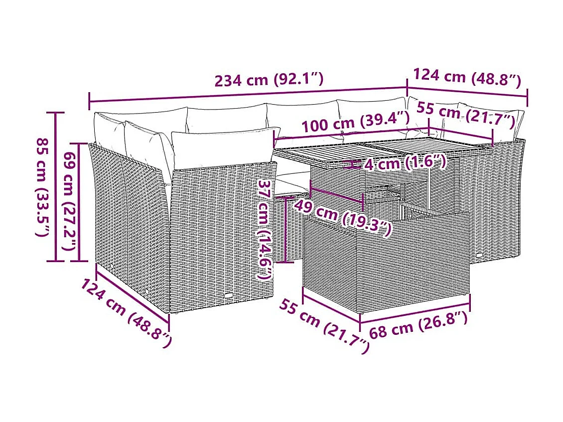 Salon de jardin avec coussins 7 pcs beige résine tressée