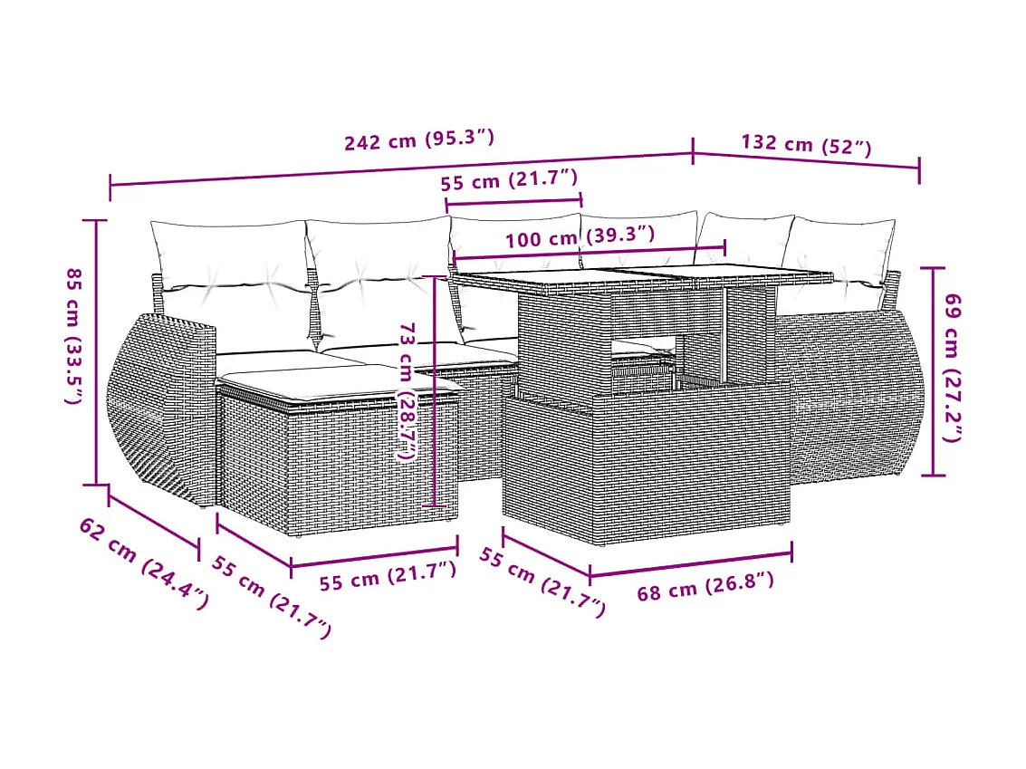 Salon de jardin avec coussins 7 pcs beige résine tressée