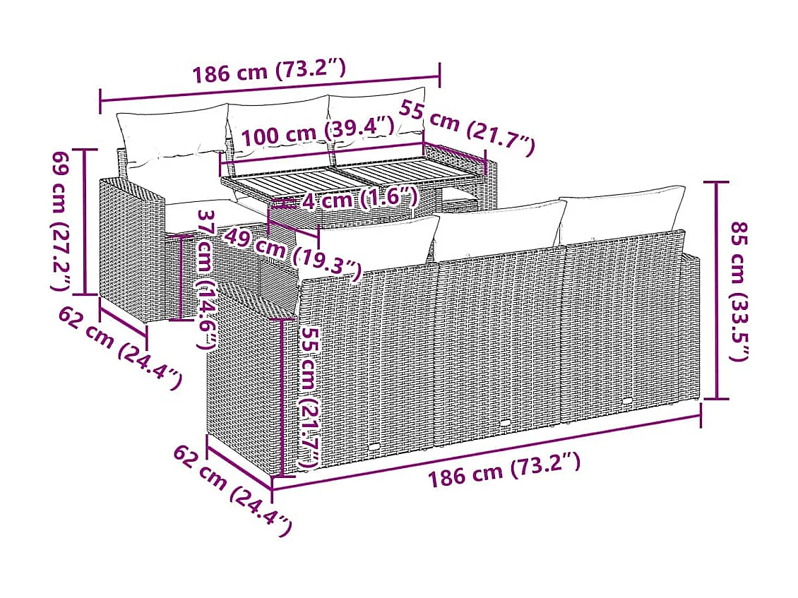 Salon complet de jardin Canapé 2 places et 2 fauteuils