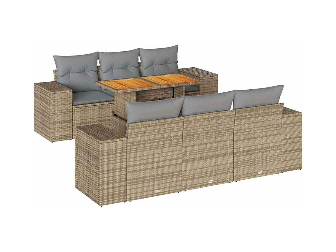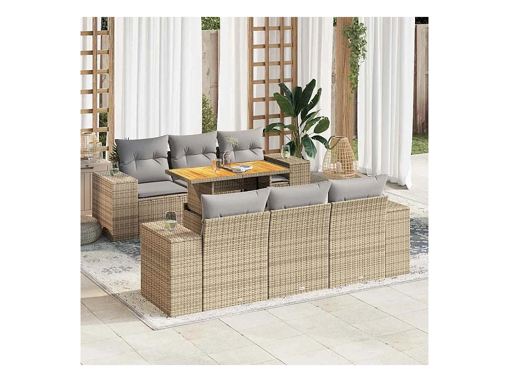 Salon de jardin avec coussins 7 pcs beige résine tressée