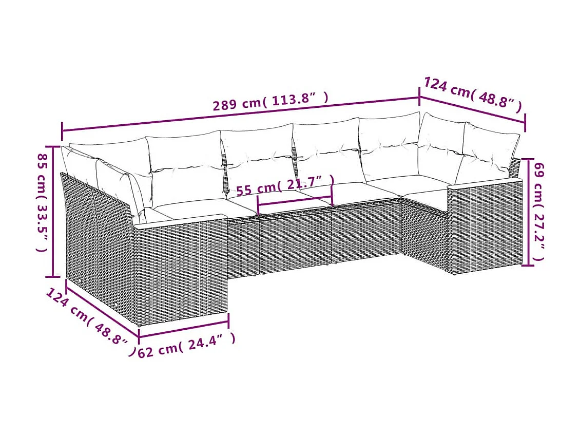Salon de jardin avec coussins 7 pcs beige résine tressée