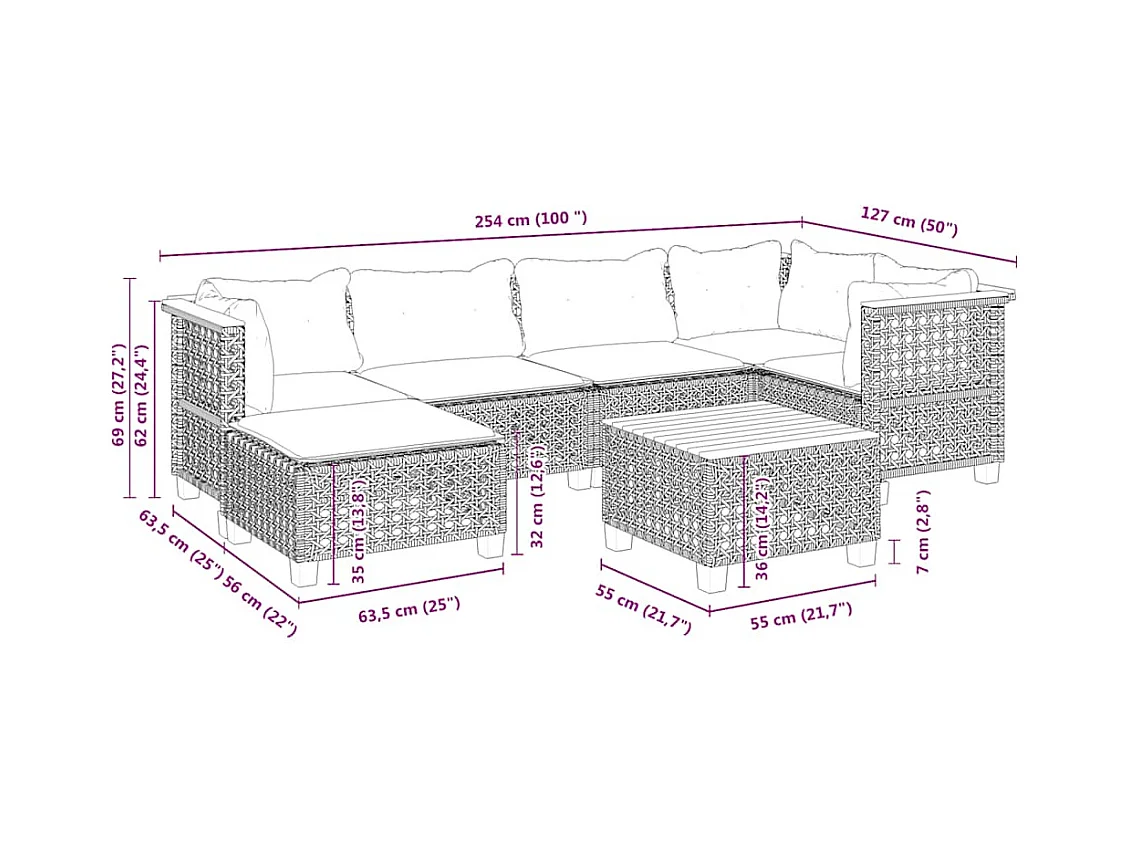Salon de jardin avec coussins 7 pcs beige résine tressée