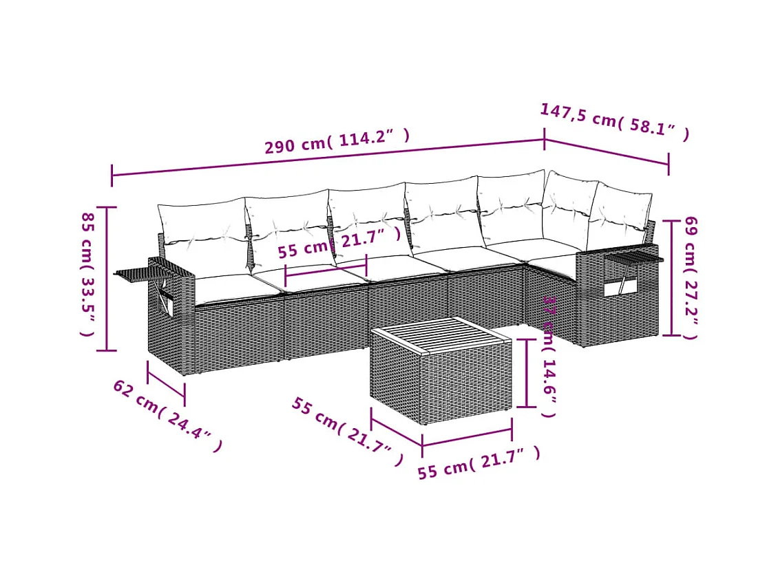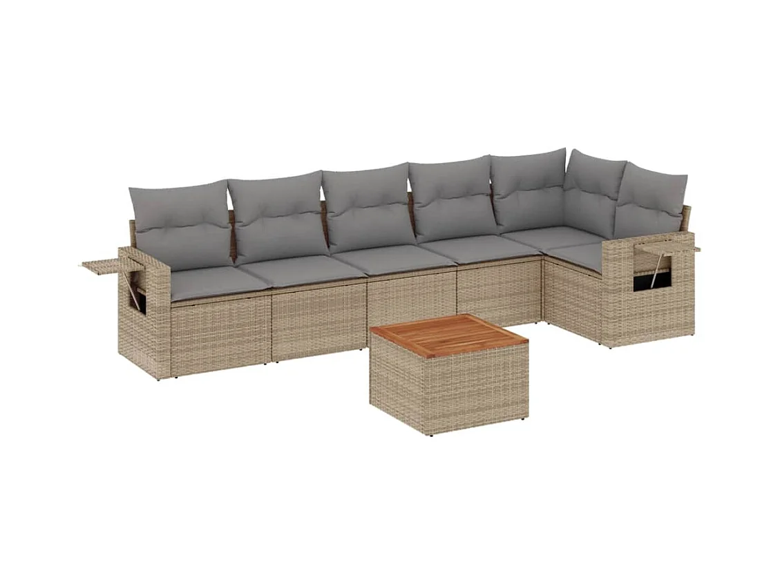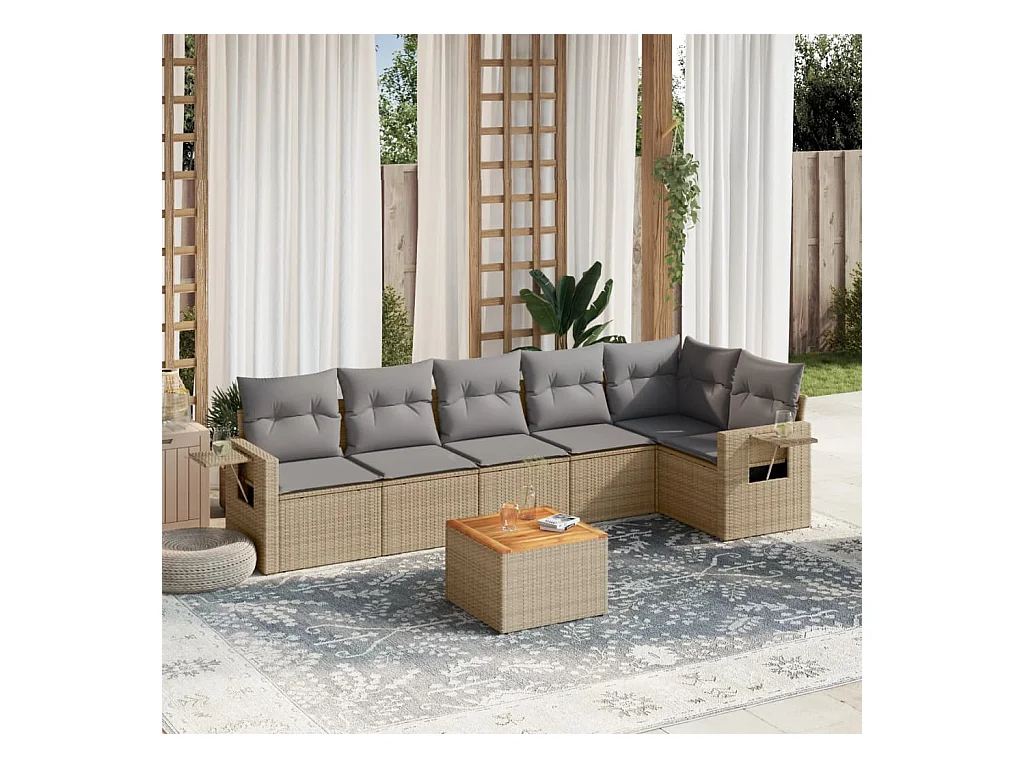 Salon de jardin avec coussins 7 pcs beige résine tressée