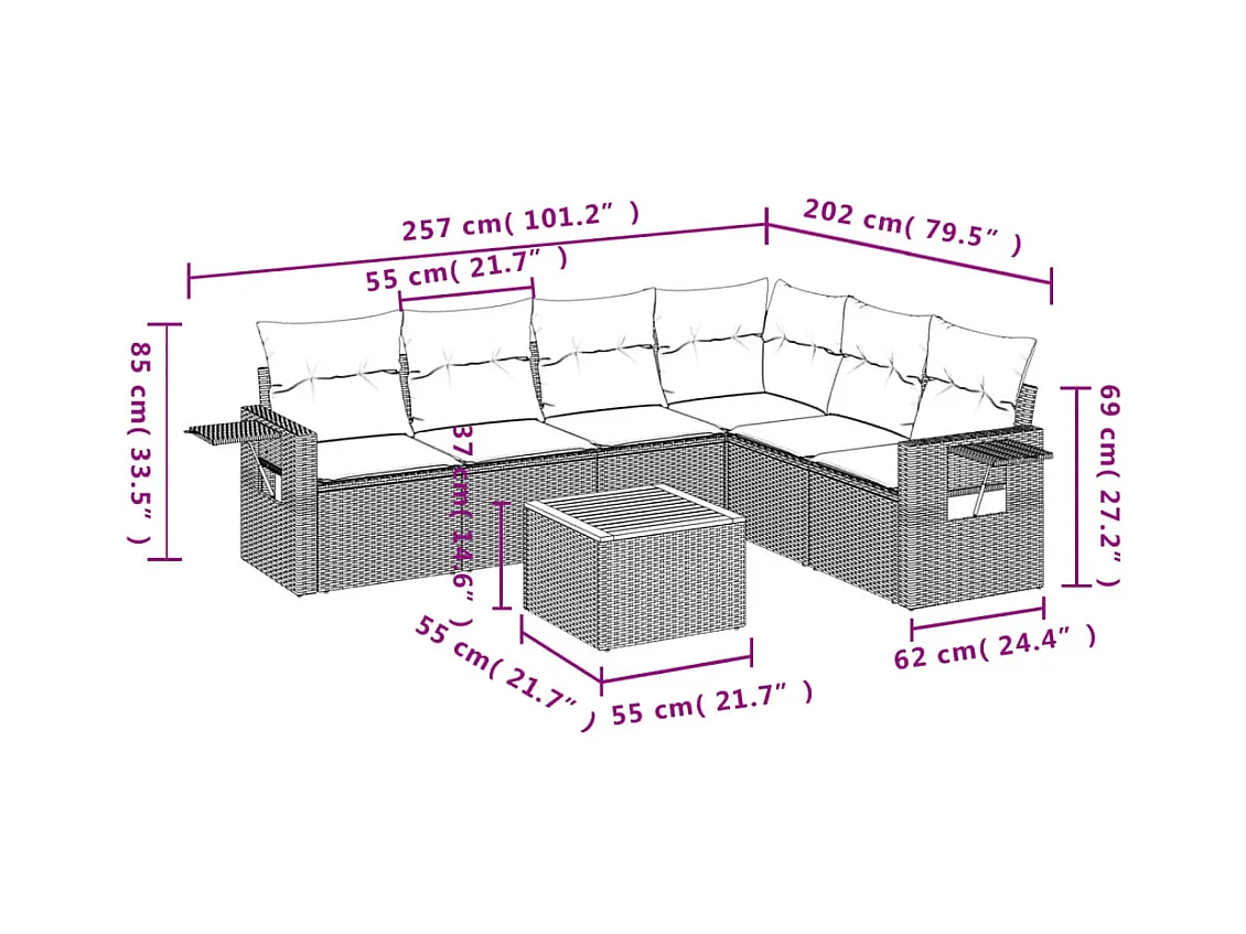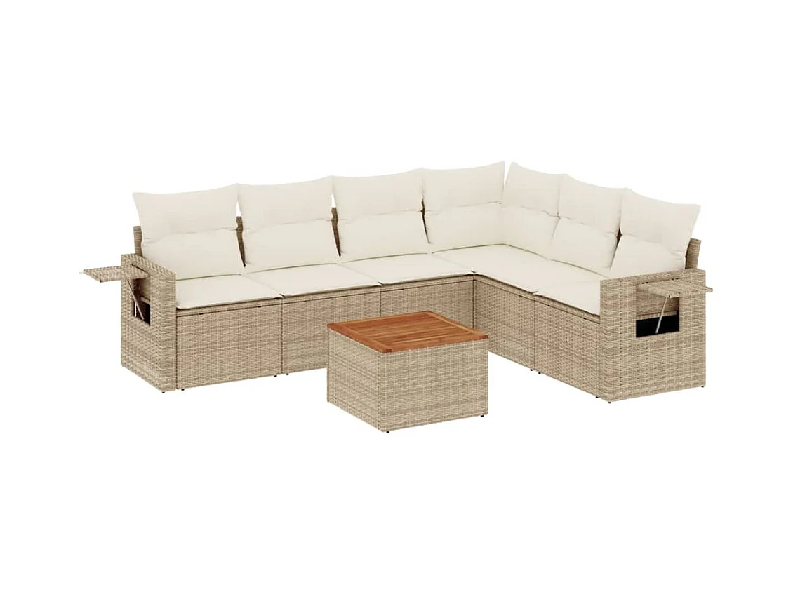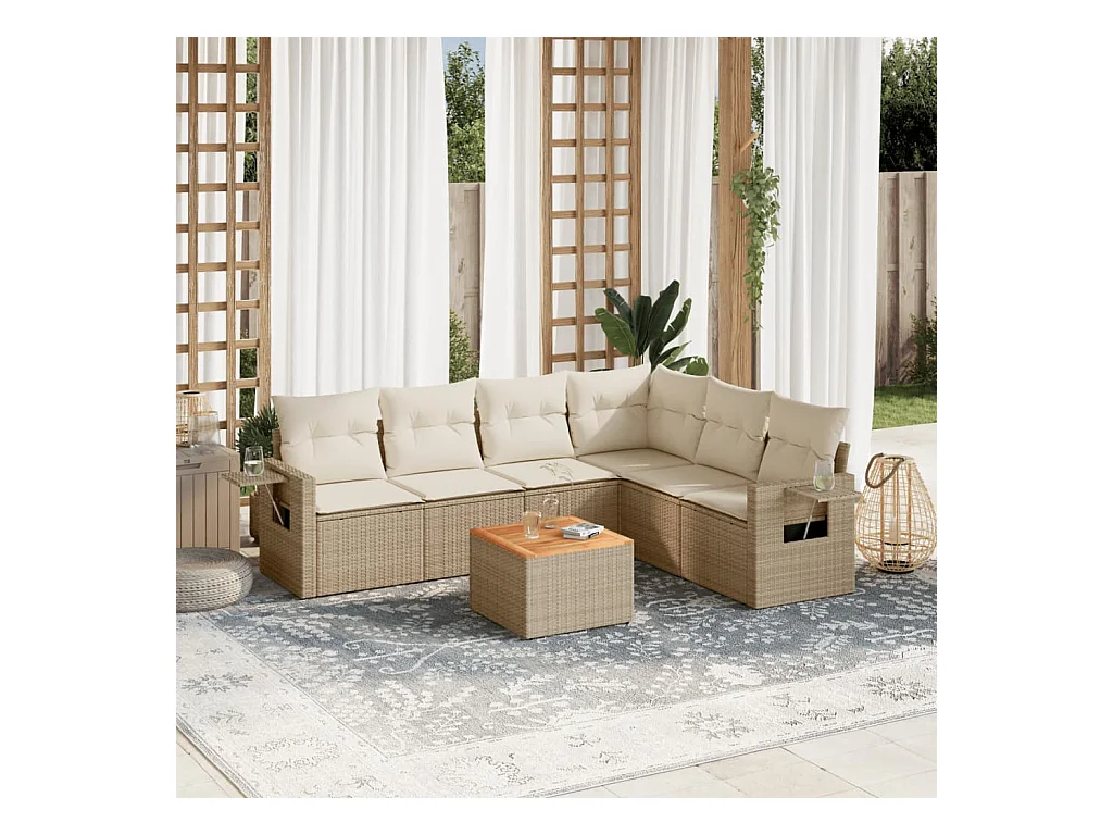 Salon de jardin avec coussins 7 pcs beige résine tressée