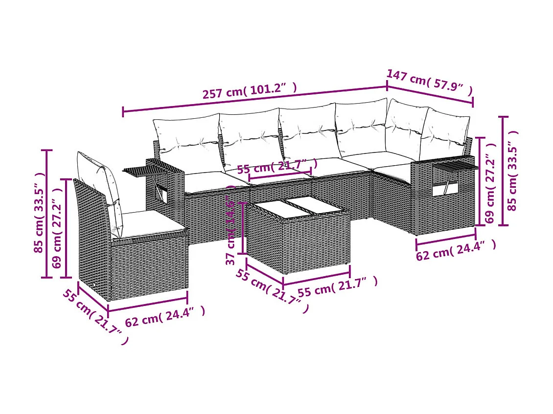 Salon de jardin avec coussins 7 pcs beige résine tressée