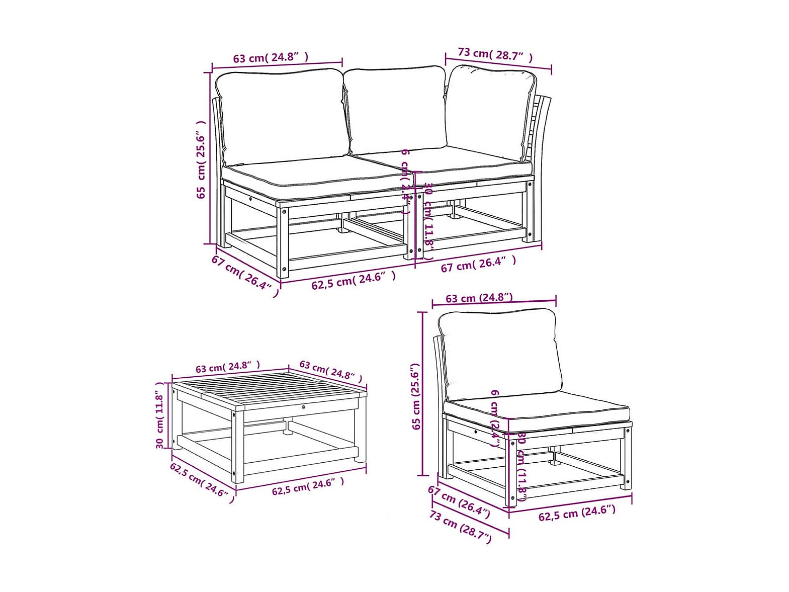 Salon de jardin avec coussins 7 pcs bois massif d'acacia