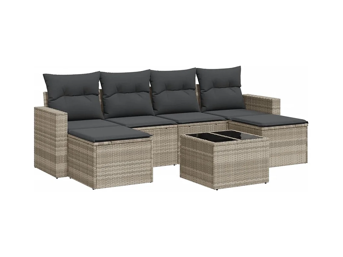 Salon de jardin avec coussins 7 pcs gris clair résine tressée