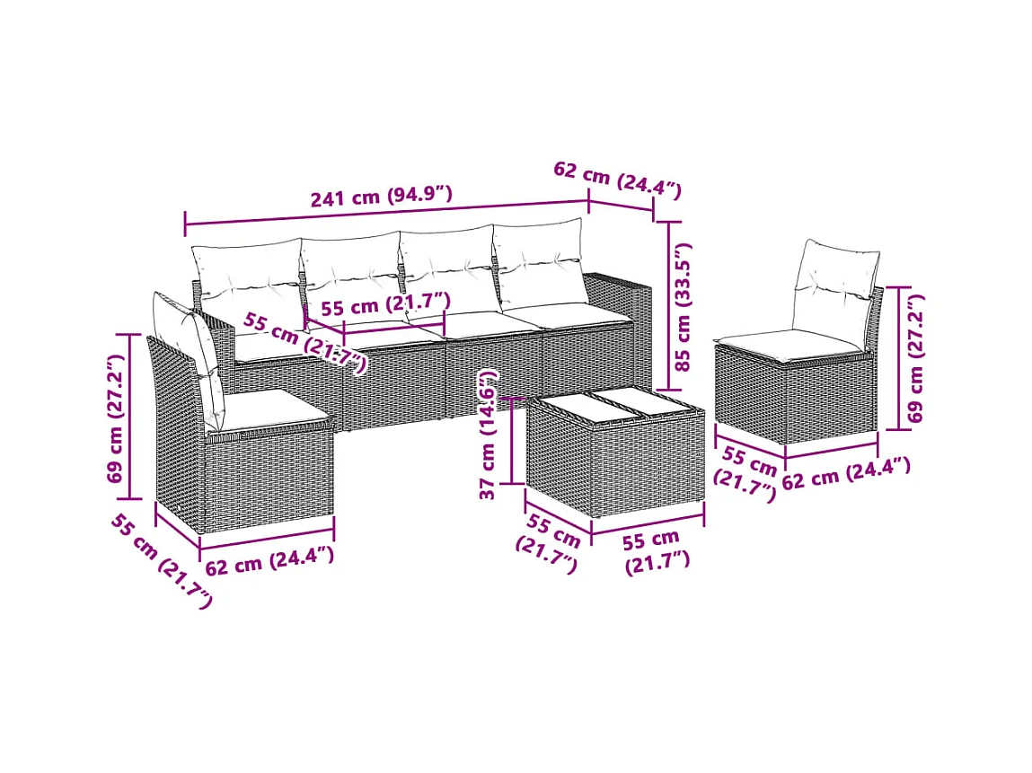 Salon complet de jardin Canapé 2 places et 2 fauteuils