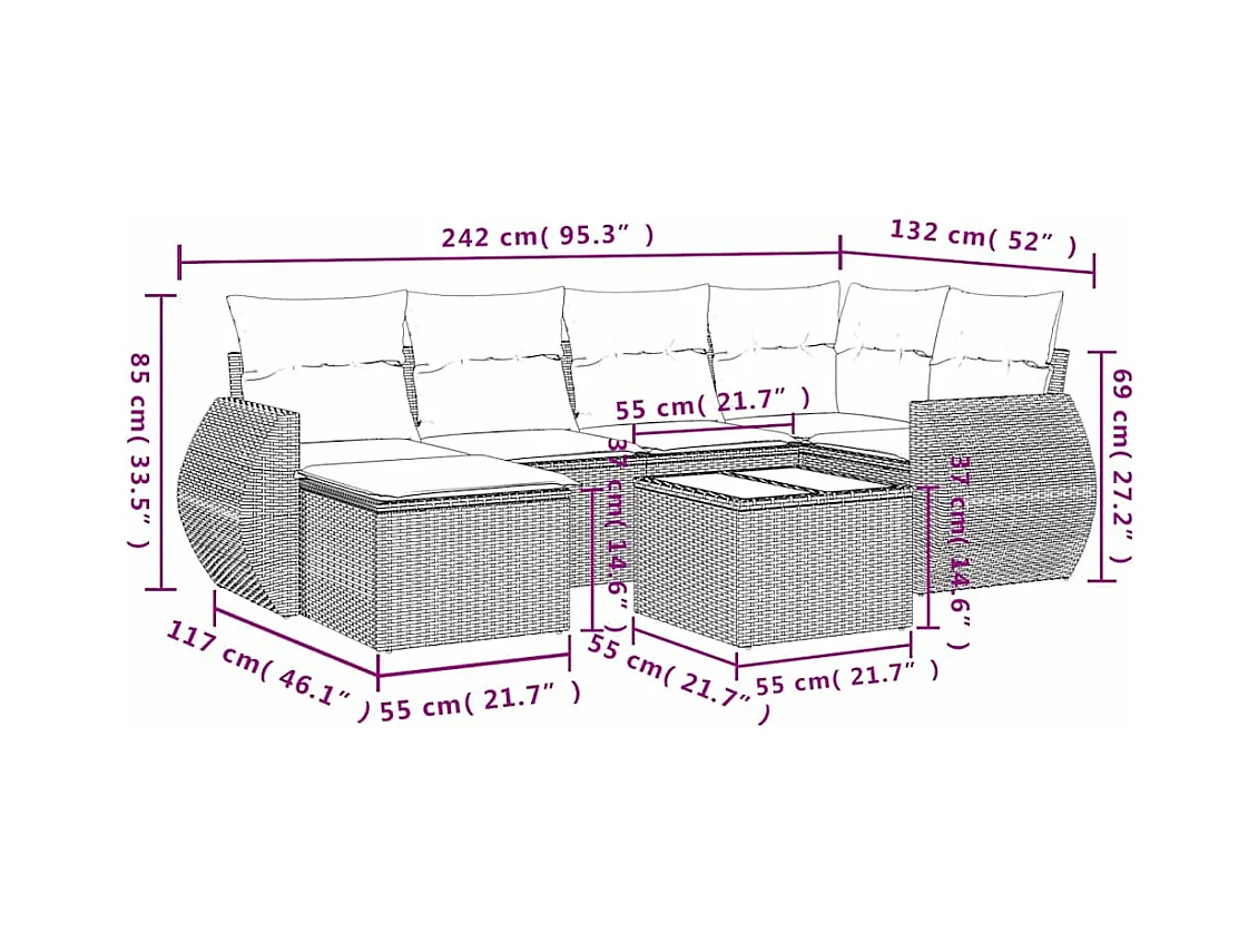 Salon complet de jardin Canapé 2 places et 2 fauteuils