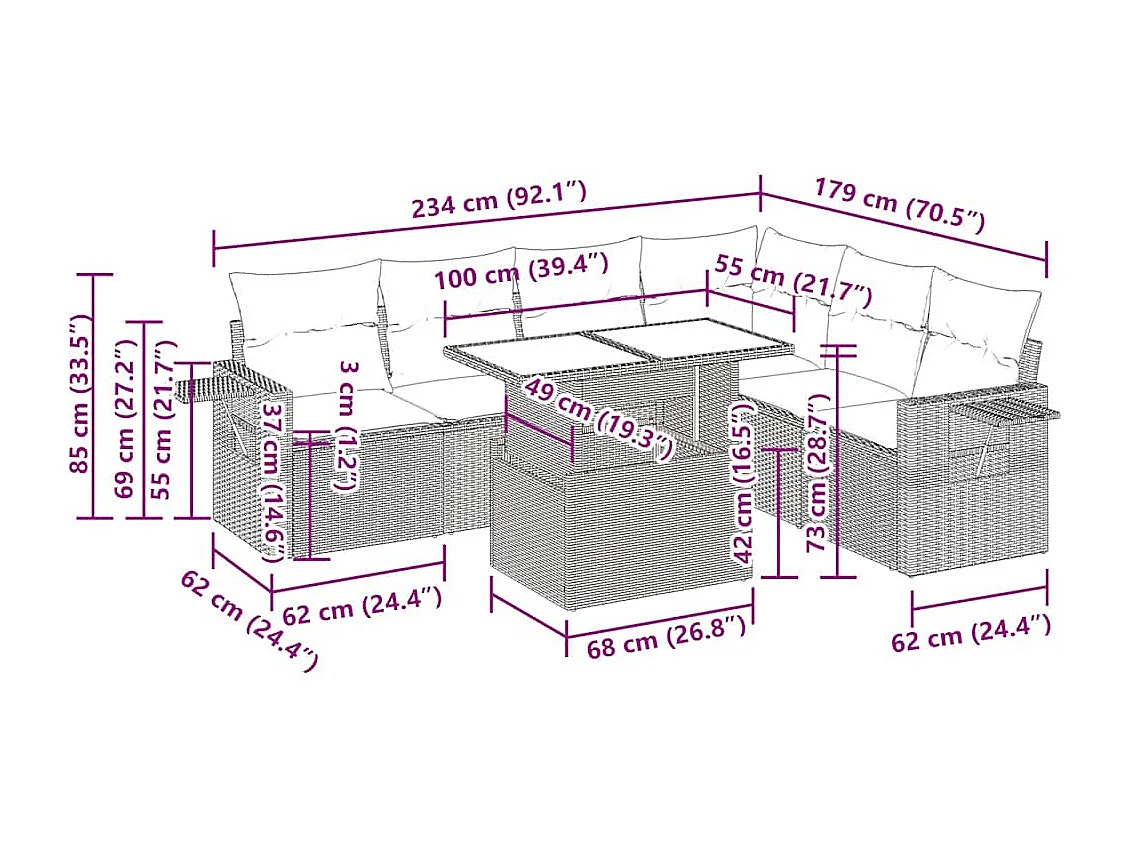 Salon de jardin avec coussins 7 pcs gris clair résine tressée